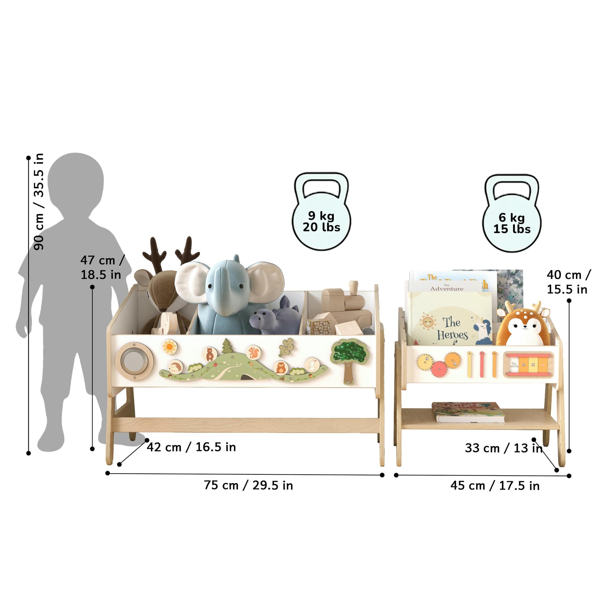El desarrollo está en los detalles: el busyboard incorporado ayuda al niño a mejorar la concentración, el tacto y la curiosidad. Gracias a su estructura abierta, el niño puede elegir sus juguetes de forma autónoma, lo que fomenta la independencia y el orden.