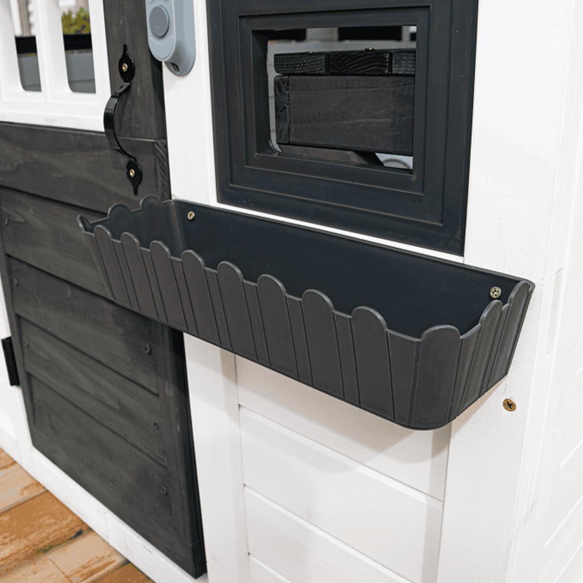 ¿Quién no sueña con tener su propio refugio? Esta encantadora casa de jardín ofrece a los niños un lugar tranquilo para relajarse, jugar sin interrupciones y disfrutar de momentos privados. La gran ventana lateral proporciona una bonita vista y, si es necesario, transforma la casa en un puesto de venta o una pequeña tienda.