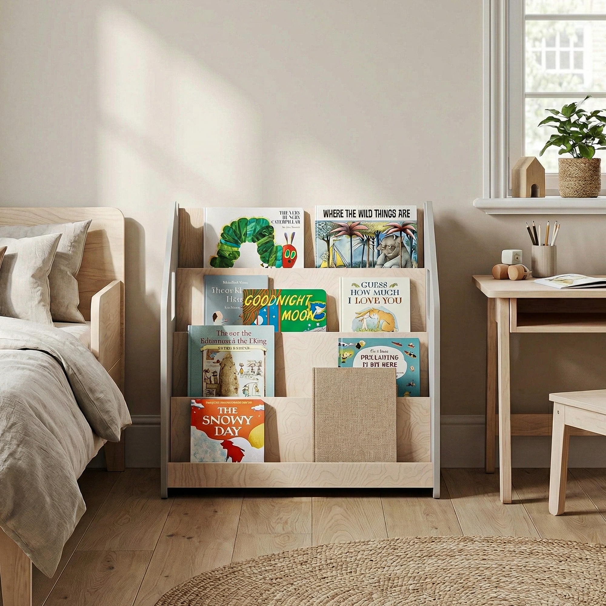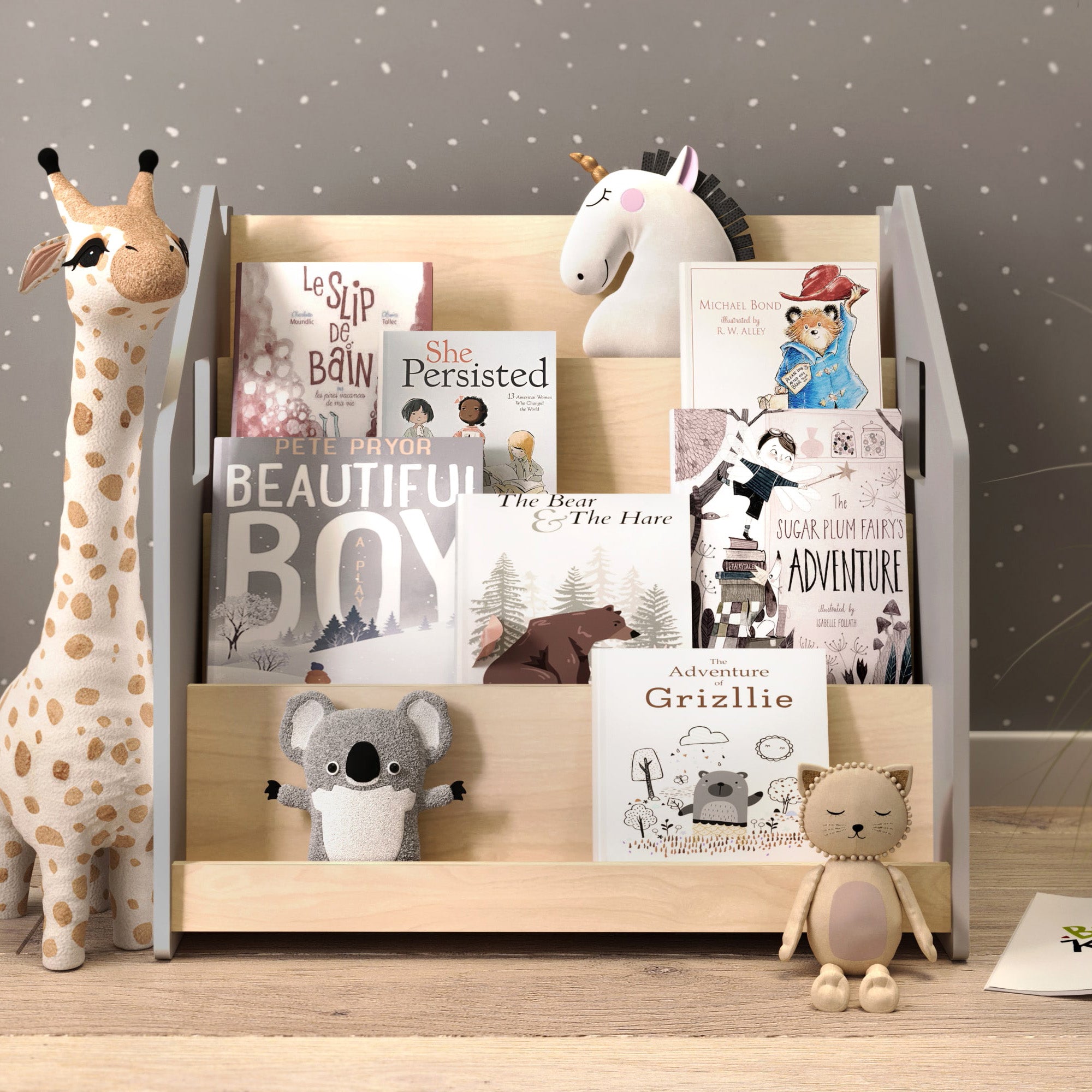 Estantería de libros / Biblioteca Montessori - Blanco y Gris