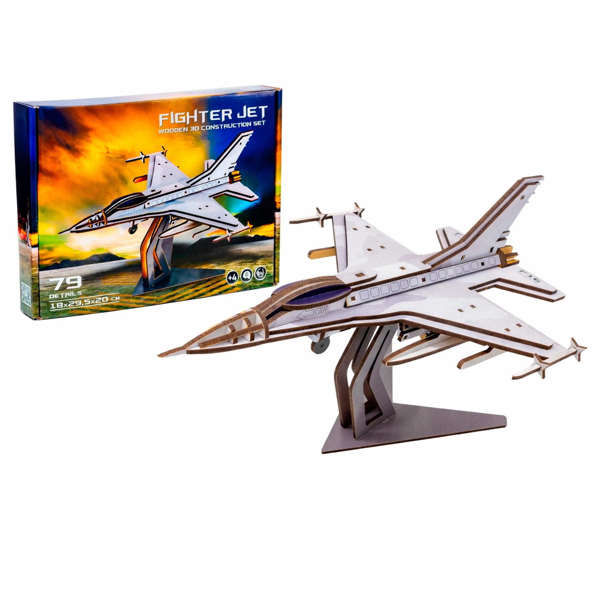 El kit está fabricado en madera de alta calidad e incluye piezas cuidadosamente preparadas, que se transforman paso a paso en un elegante modelo de avión de combate a reacción. Durante el montaje, el adolescente desarrolla el pensamiento lógico, la visión espacial, la atención, la paciencia y la motricidad fina. Este set no solo ofrece un pasatiempo envolvente, sino que también brinda la alegría de construir con sus propias manos un hermoso modelo.