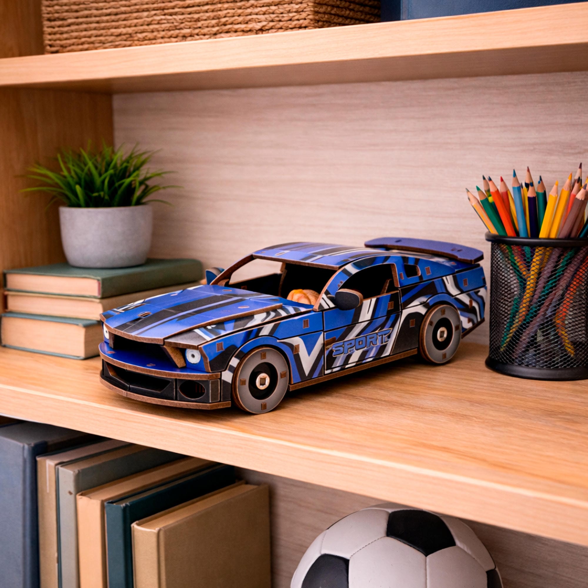 El modelo es adecuado para niños a partir de 7 años y es ideal para actividades creativas, momentos de juego o como un bonito regalo. Una vez terminado, este coche tipo muscle car encantará a los pequeños aficionados a los automóviles y podrá convertirse en una bonita decoración para la habitación infantil.