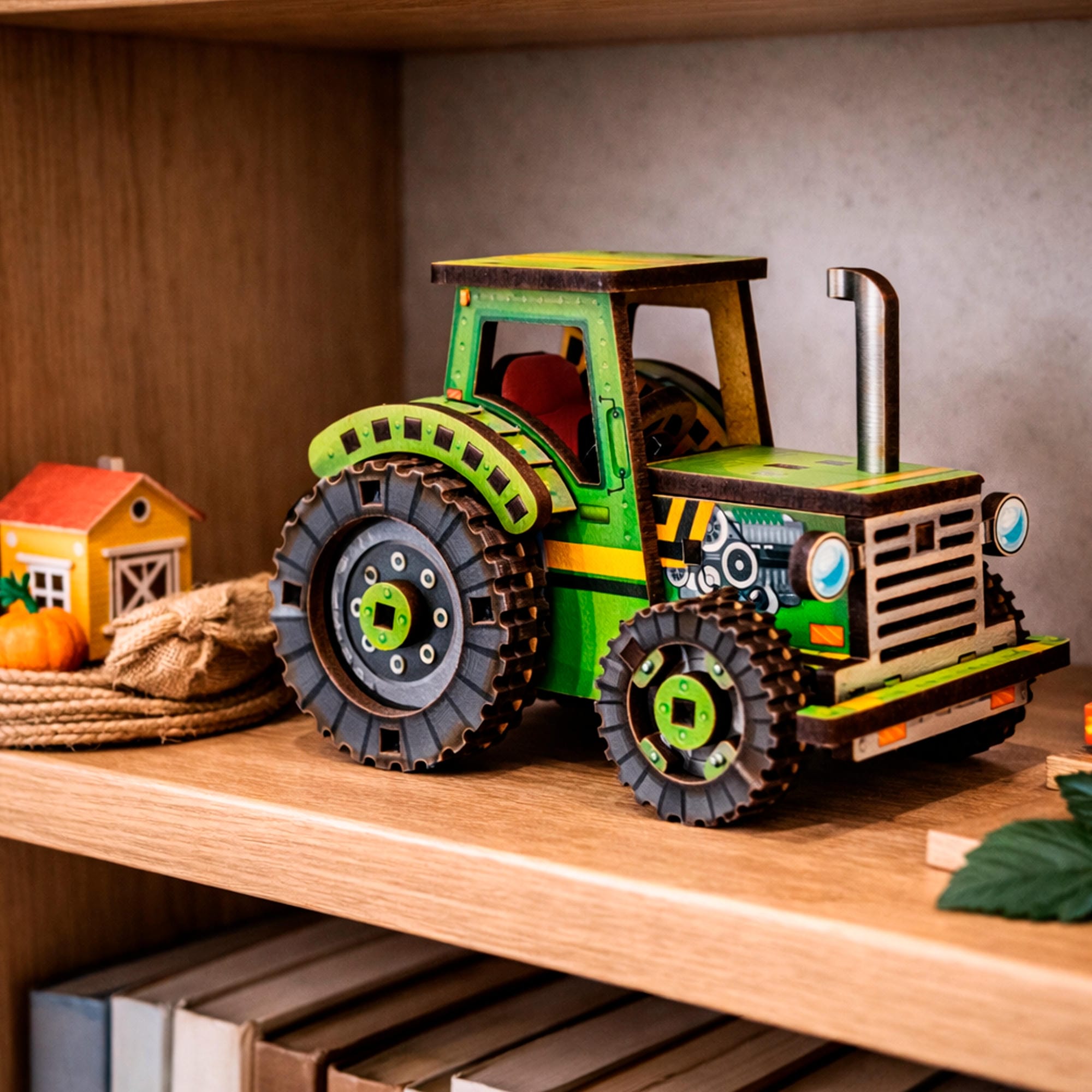 BusyKids Tractor turbo es una maqueta 3D de madera que combina diversión, desarrollo y alegría por el modelo terminado.