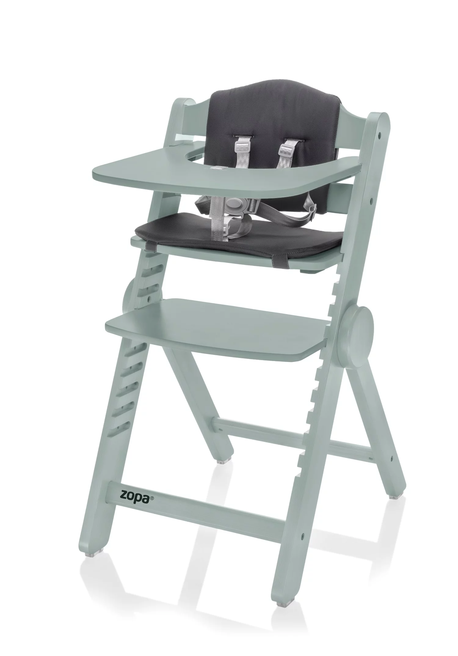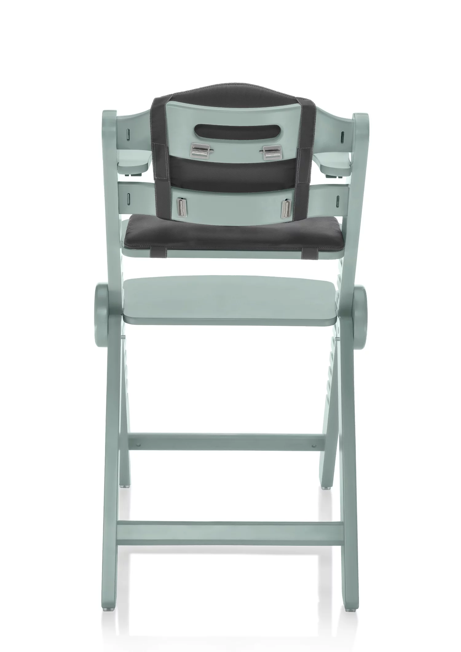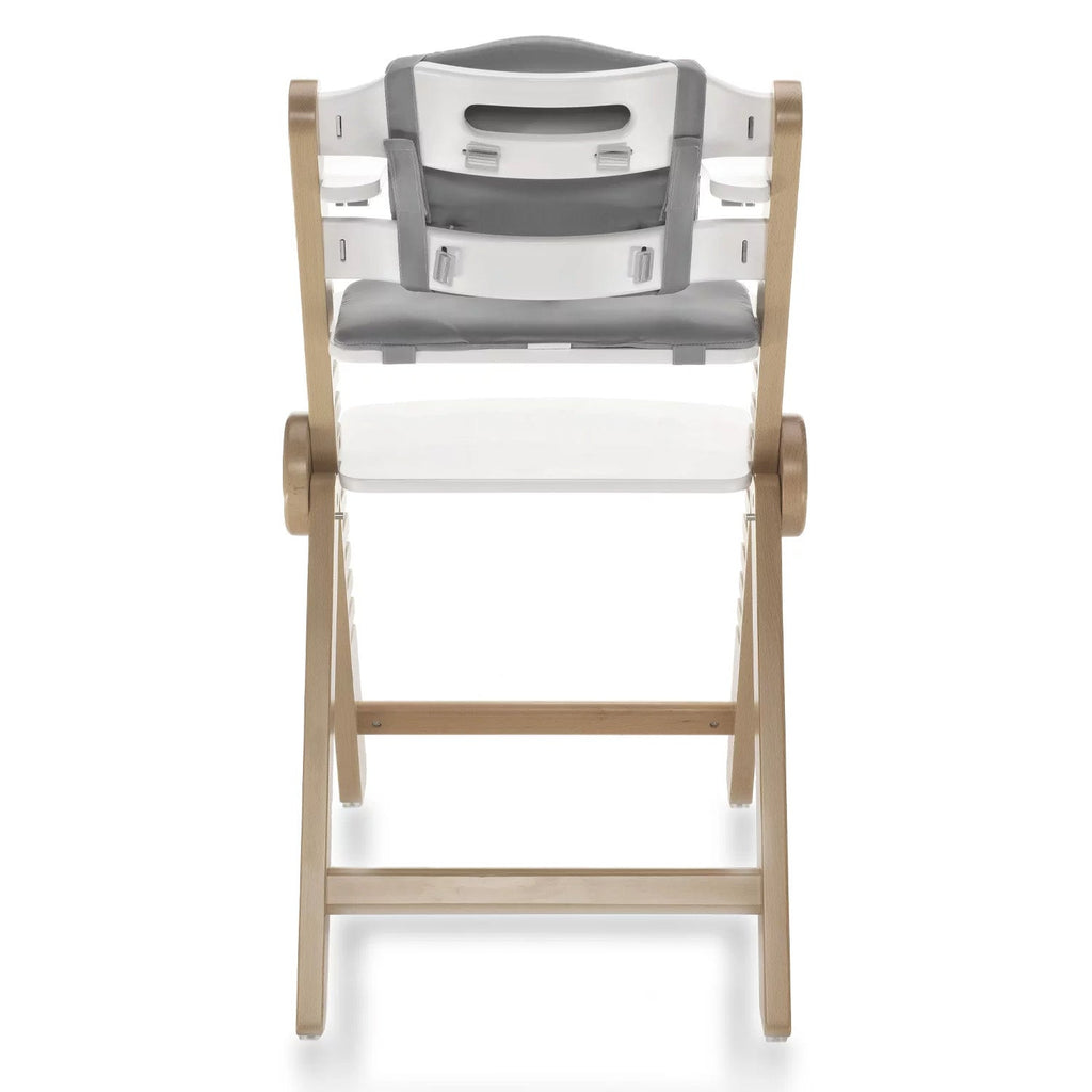 Gracias al innovador sistema Clipp & Clapp, la trona se puede ajustar en altura sin herramientas. Es una de las pocas tronas de madera plegables del mercado, lo que permite un almacenamiento fácil gracias a sus dimensiones compactas. La manija integrada facilita además el transporte.