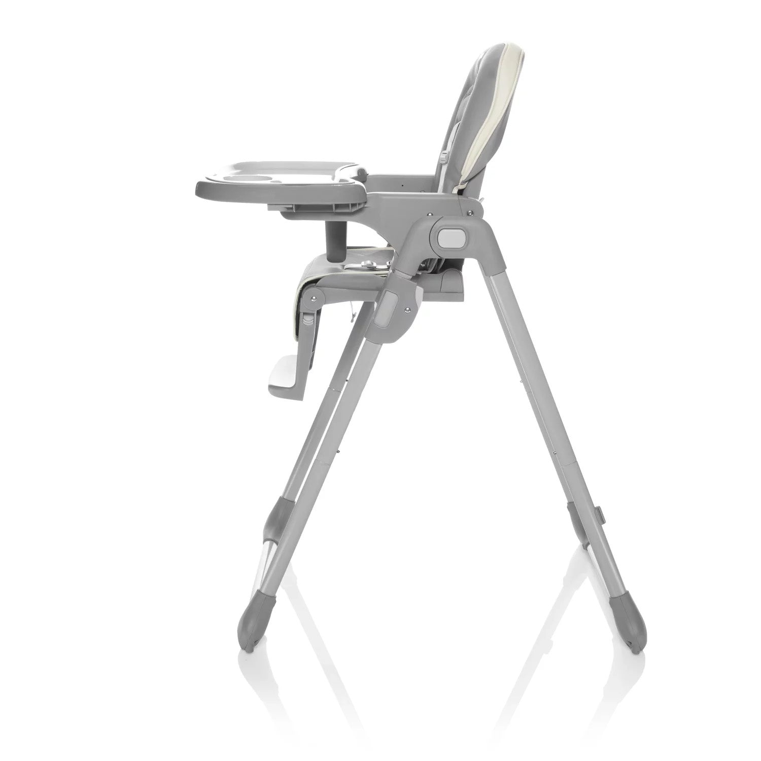 Una trona que se adapta perfectamente a las necesidades de padres e hijos. Su estructura estable es muy ligera y se pliega fácilmente gracias a dos sistemas de bloqueo laterales. Una vez plegada, la trona se mantiene de pie por sí sola. Gracias a sus dimensiones compactas, puede guardarse sin problemas incluso en espacios pequeños. Plegada mide solo 13 cm de ancho.